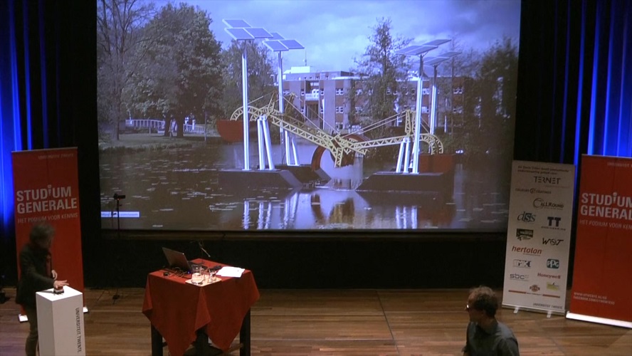 The Taaie Tiller is back in the water. Na een ware race tegen de klok is de Taaie Tiller vorige week in 4 dagen en nachten tijd opnieuw in elkaar gezet en in het water op de Universiteit Twente geplaatst. Zodra ook alle waterpompen en de elektrische installatie zijn ingebouwd kan de machine weer in beweging worden gezet. De opening van de Taaie Tiller is op dinsdag 9 Mei a.s., see the programme. U bent van harte welkom en uitgenodigd hierbij aanwezig te zijn!
