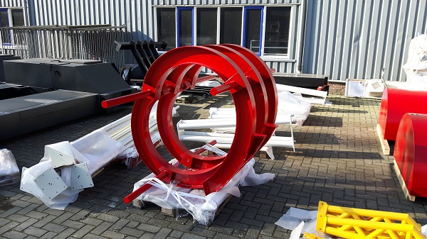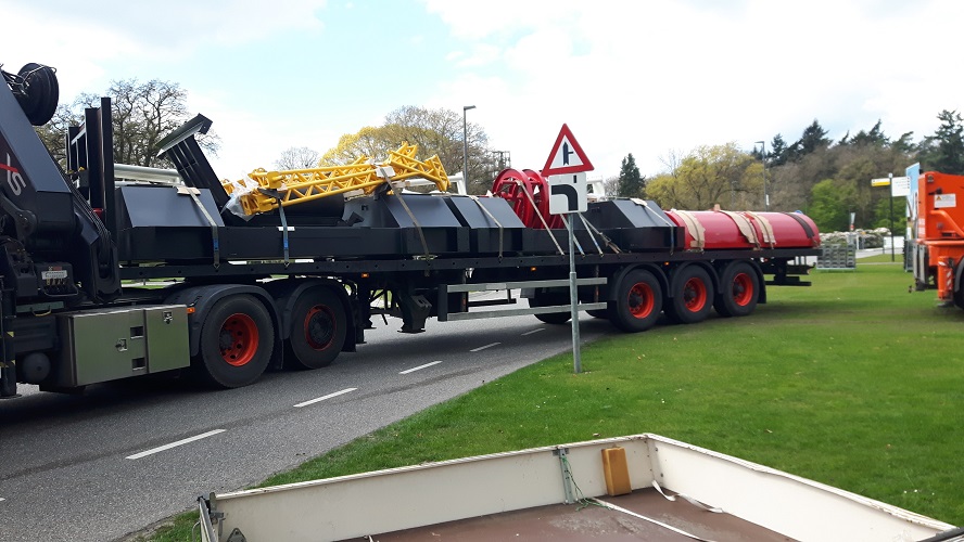 Daar konden we na 4 dagen non-stop doorwerken de hijsdelen en de grijper op vrijdag afmonteren op het ponton.