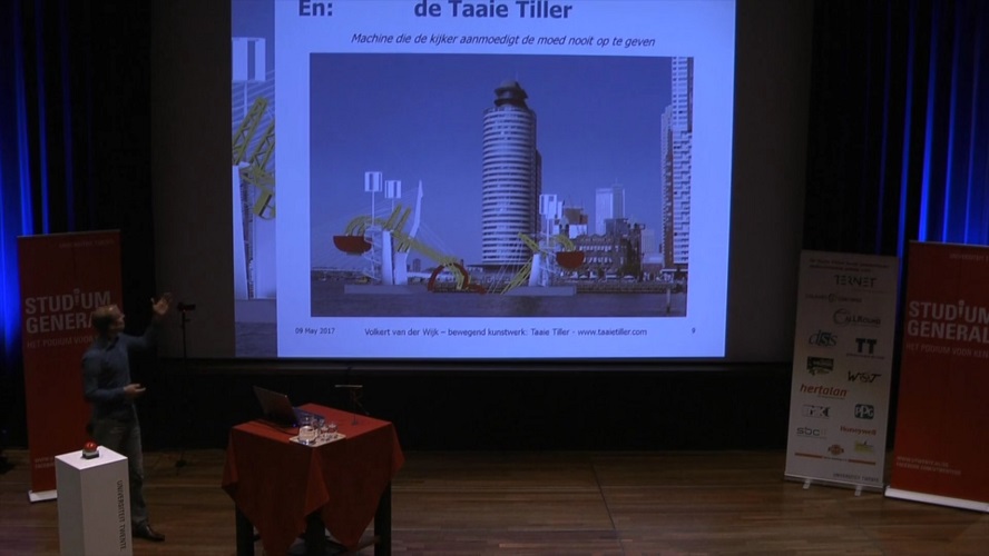 De openingsavond op 9 Mei begon met een Studium Generale lezing over het verhaal, de achtergrond en de ontwikkeling van de Taaie Tiller door Volkert van der Wijk.