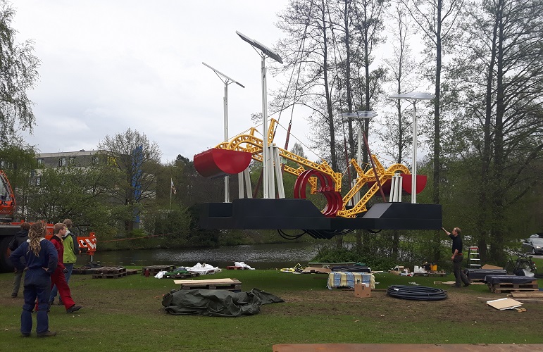 Na Pasen gaan we de Taaie Tiller weer in elkaar zetten en terug in het water van de Universiteit Twente plaatsen. Dan is het kunstwerk helemaal af. Dinsdag 9 Mei 2017 is de grote dag, dan zal de Taaie Tiller officieel geopend worden. Houd hiervoor de website/follow us in de gaten voor meer informatie. U bent alvast van harte uitgenodigd te komen kijken!